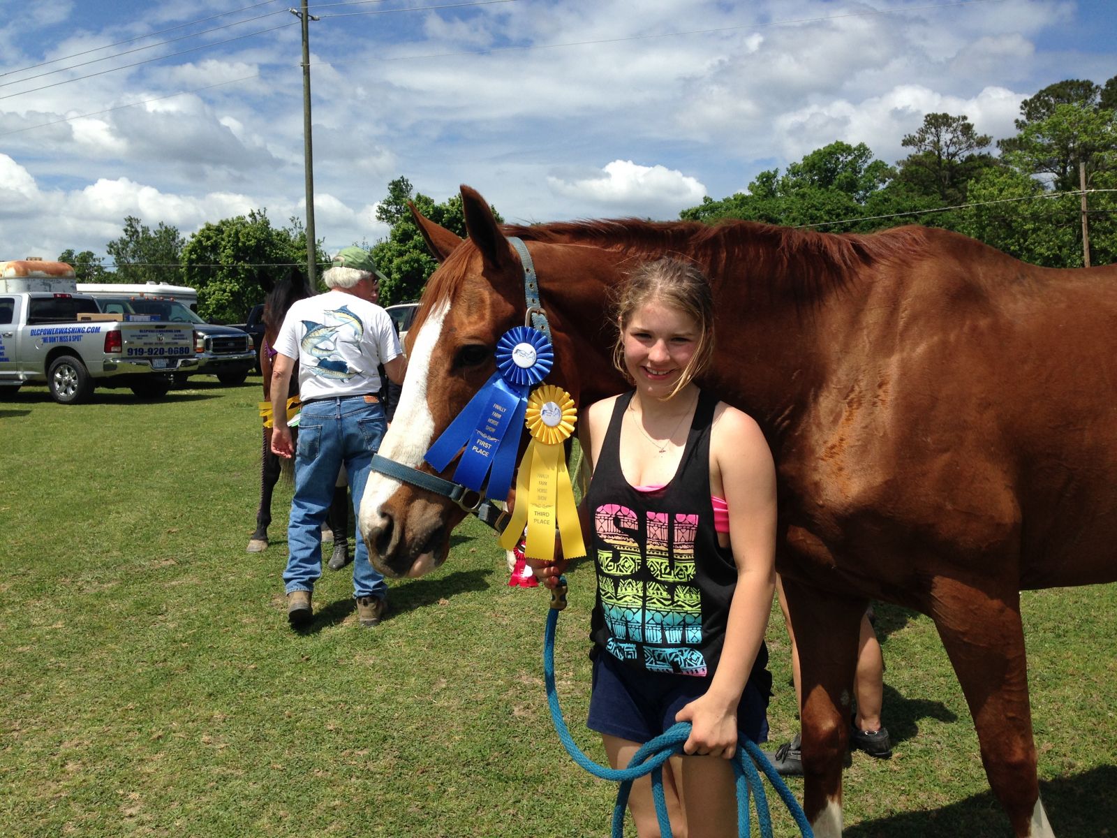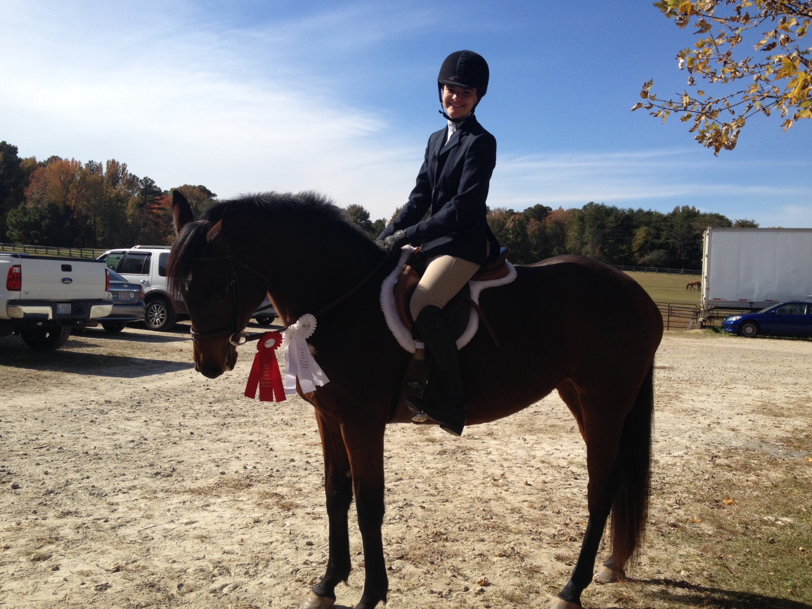 Maddie was purchased by Czechmate Stables in May of 2014 as a lesson horse. Maddie was born March 16, 2009 in Jacksboro, Texas. She’s an off the track Thoroughbred out of a dam named Quite Spender and by a stallion named Magic Cat. She was raced as a two year old under the name D. G. Magic Cat and she had 5 starts, winning $2,181 in her career. Maddie now happily resides at Czechmate Stables as a lesson horse. She is incredibly smart, levelheaded and eager to please. Maddie has only just begun her show career and has already shown endless potential for the hunter, jumper and equitation rings.